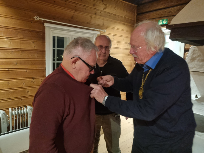 Rotarynålen ble delt ut av president Eivind, og mentor Knut hadde en kort info.